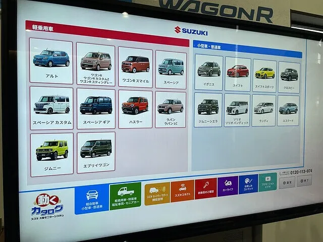 スズキの電子カタログショールーム内設置。360°外観、室内が大画面でみえます。